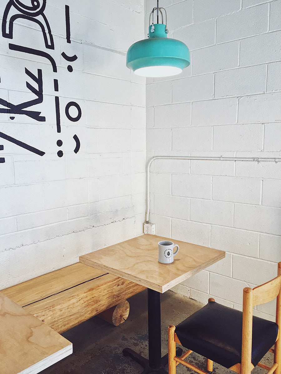 Sat on a corner lot on the city’s main street, Pine Coffee occupies a former mechanic shop. An extensive remodel was undertaken by shop founders Jim and Cody Hamilton, a father and son duo with deep Wyoming roots, which included hand-built pine furniture, benches, and accents. They kept the original garage door and leave it open on warm summer days opening up their bar to a patio. Their front room wall is adorned with a hand-stenciled mural of all things coffee, while further back in the shop, you’ll find a cozy couch in front of a fireplace.